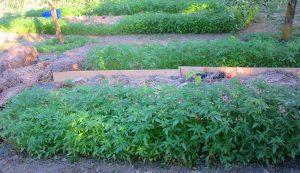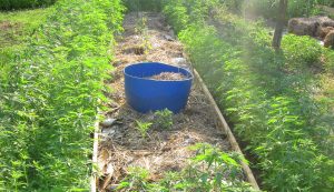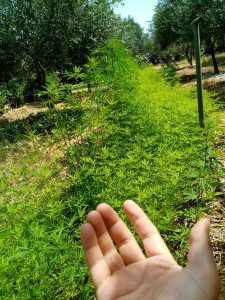 Nous avons décidé de créer une haie maraîchère de chanvre qui est pare-vent, ombragère et refuge de biodiversité. Pour affronter les canicules de nos étés méditerannéens et préserver fruits et légumes du jardin.