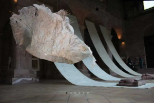 Nous avons fourni en chanvre l’artiste Aidée Bernard pour qu’ elle puisse créer, avec la fibre, des oeuvres d’ origine végétale. Ses créations en papier de chanvre nous font voyager au gré de ses expositions.